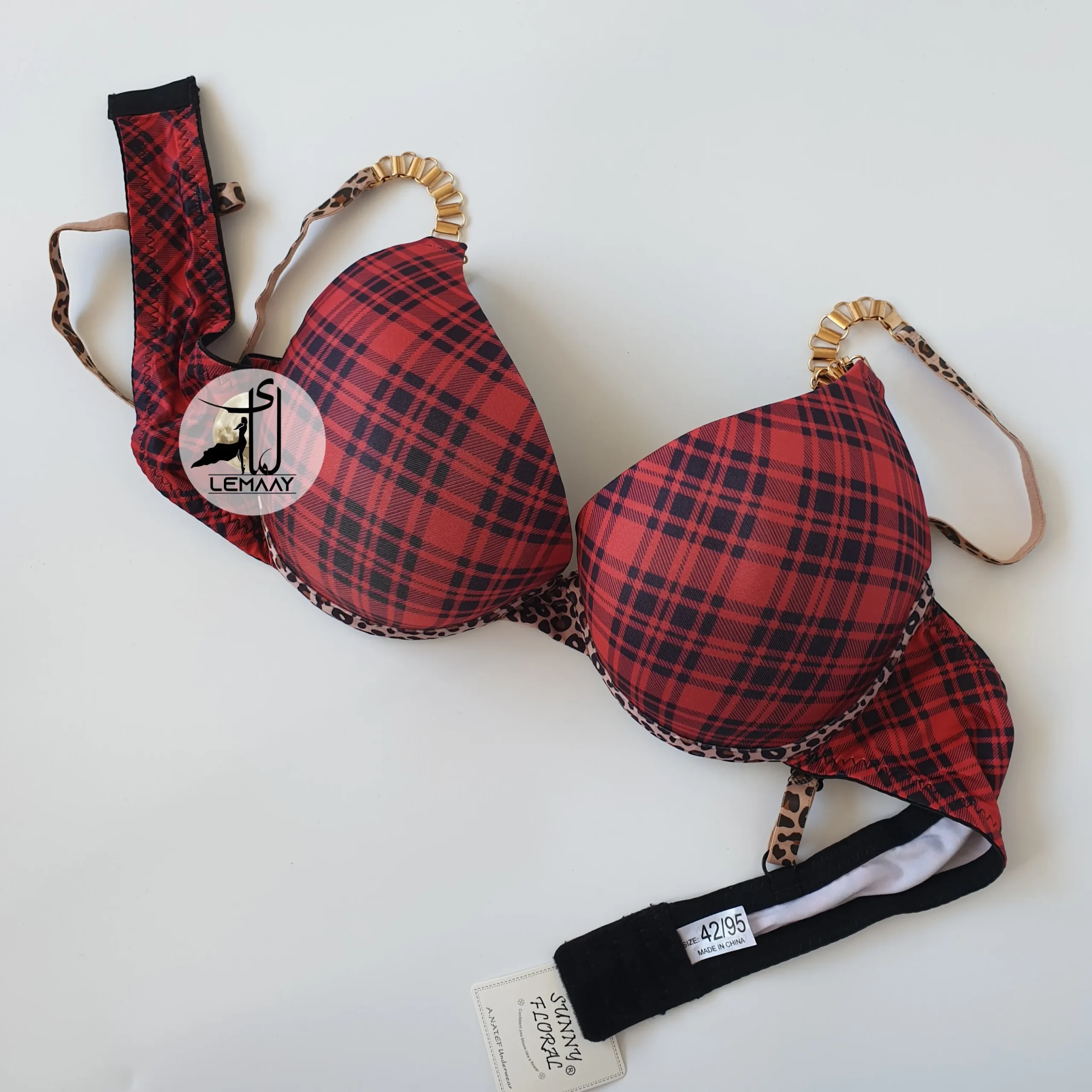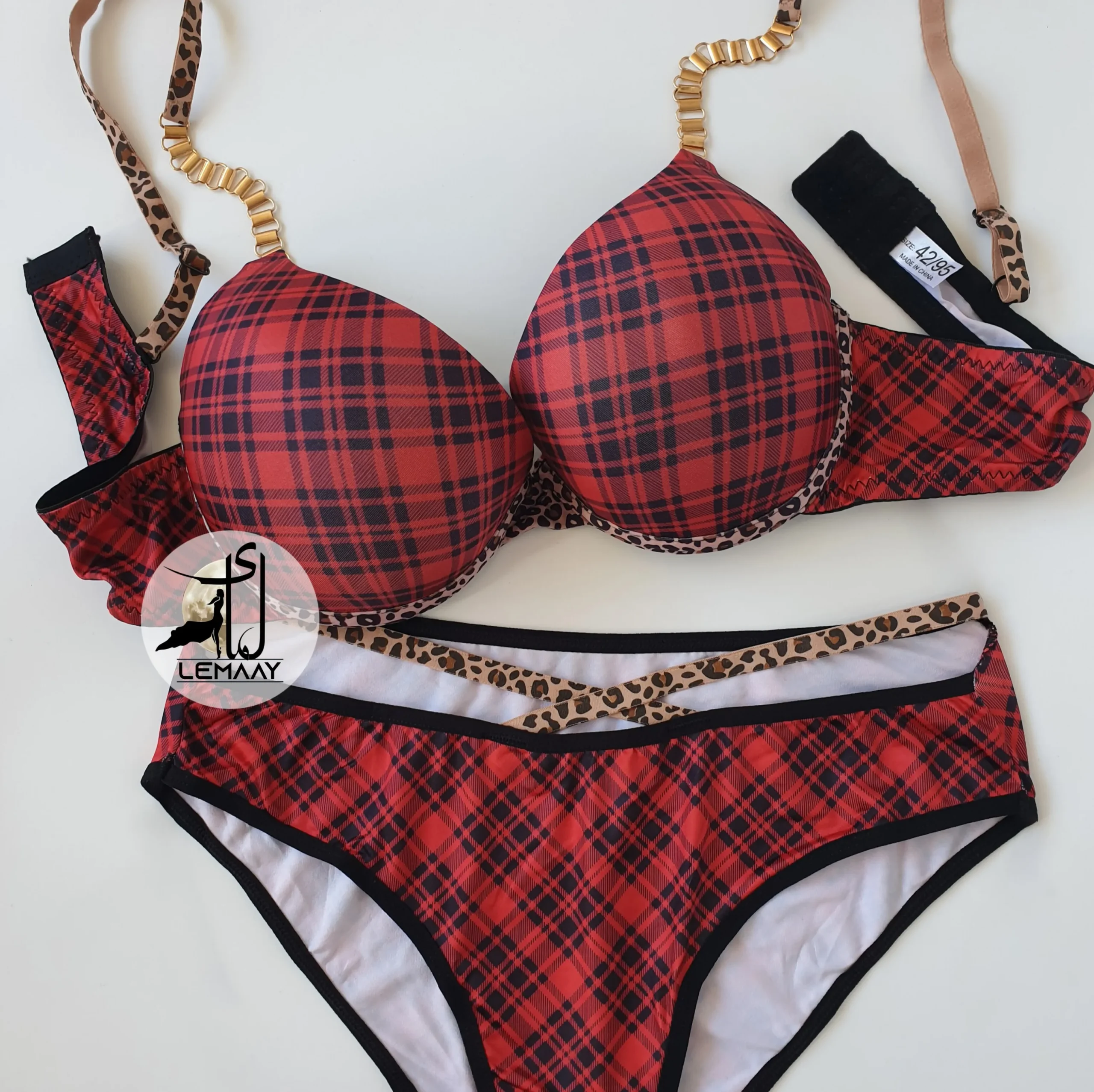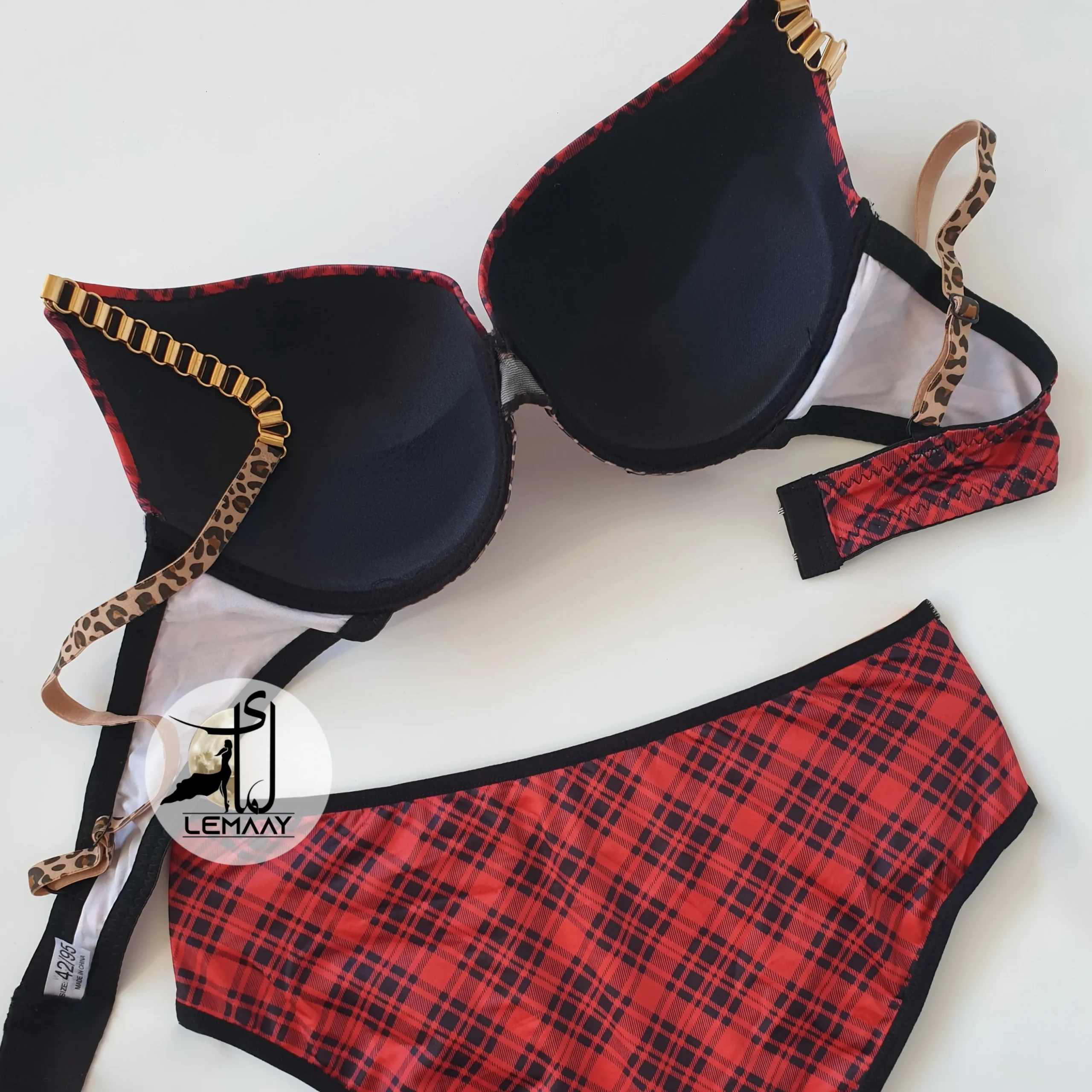 ست سوتین و شورت اسفنجی چهارخونه فانتزی